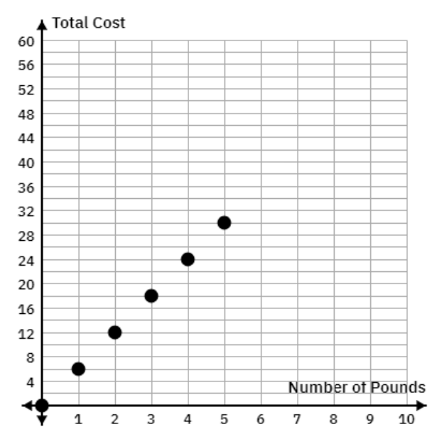 The graph shows the cost of a beef, y, based on the number of pounds (x) purchased.