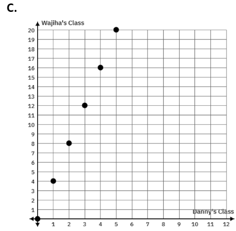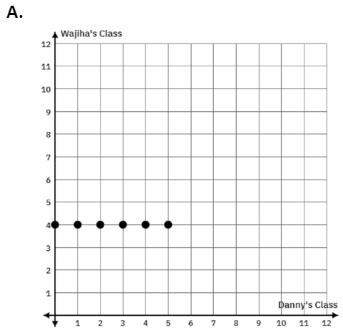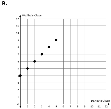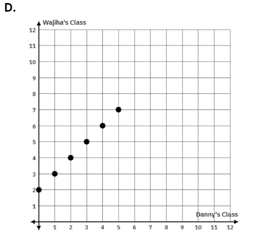 Danny and Wajiha attend Texas Tech University. They both take a college algebra class after lunch. Wajiha’s algebra class is 4 hours later than Danny’s algebra class. Which graph shows the relationship between the time of Danny’s algebra class and Wajiha’s algebra class?