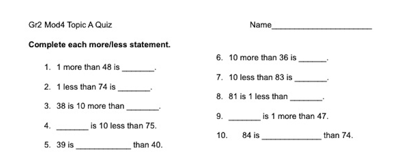 2nd grade Module 4 Topic A Quiz