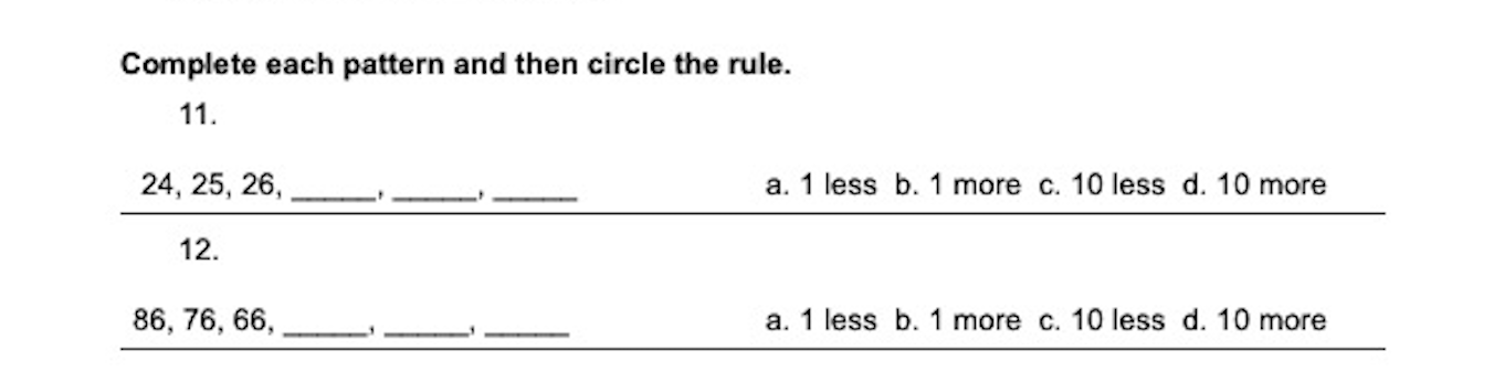 Complete each pattern and then circle the rule.