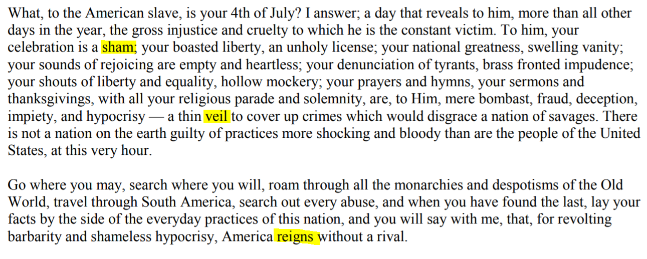 The main purpose of Douglass’s speech is to