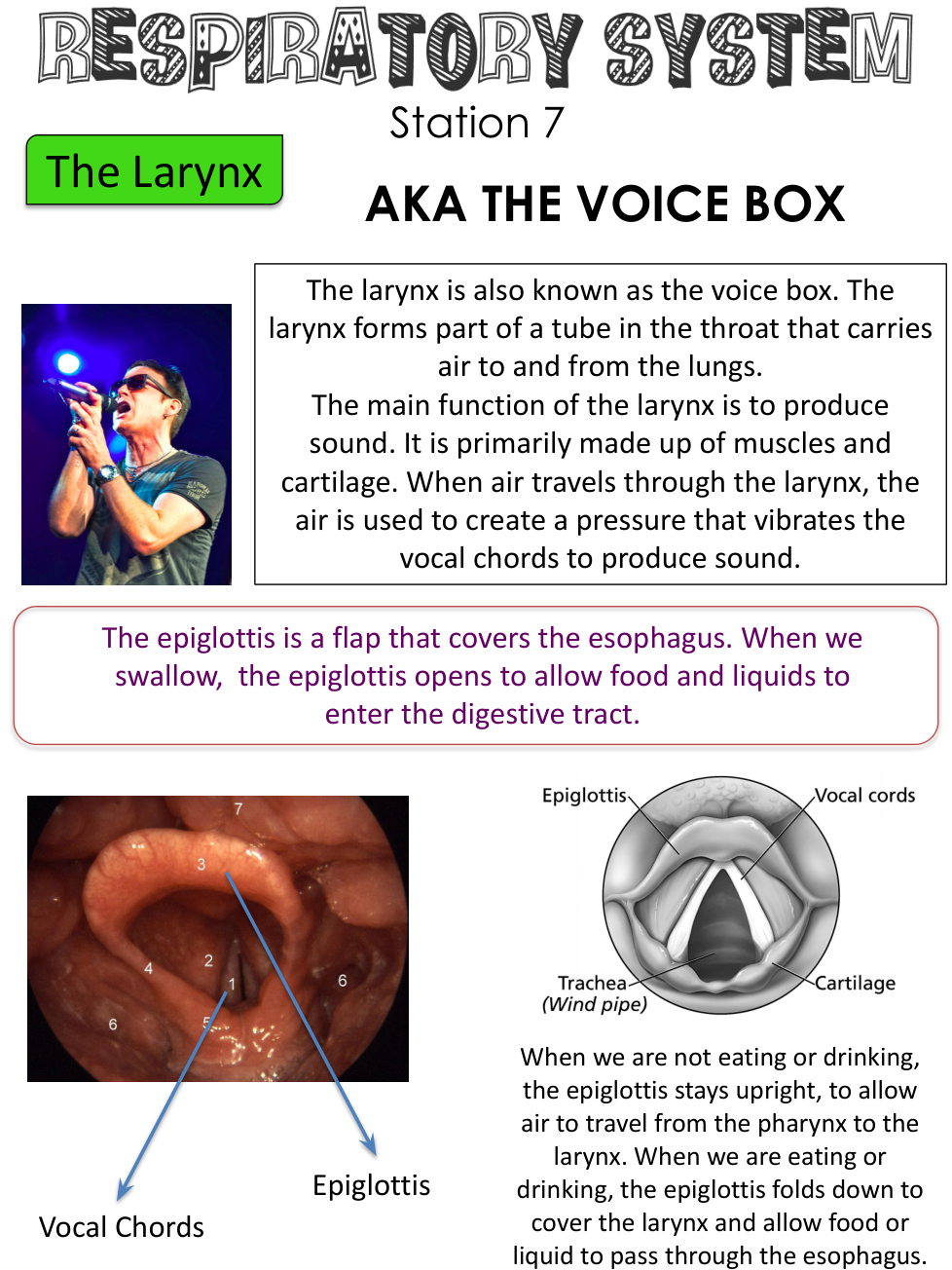 The _______ divides the upper and lower respiratory system. Everything above it, such as the nose and pharynx are considered the _______ respiratory system. Everything below the _______ is the _______ respiratory system.