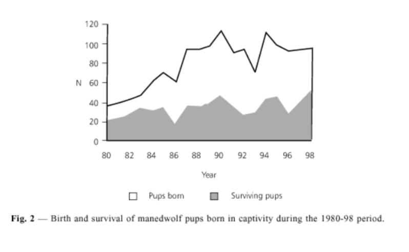 Based on the data on the graph, what can you say about the mortality rate of the wolf pups?