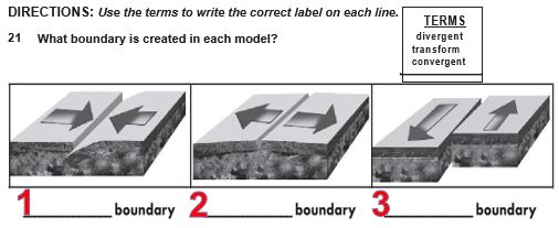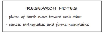A student recorded notes on plate tectonic boundaries. What type of boundary is described in the student’s notes shown?