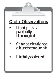 A student investigated a piece of cloth and recorded observations. Based on the observations shown, what conclusion can the student make?