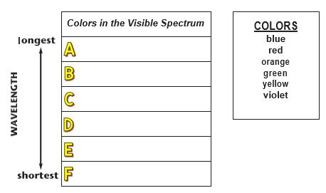 Label the colors of the spectrum from the longest wavelength to the shortest wavelength.LABEL E
