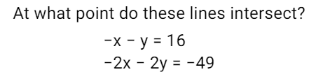 Using Elimination (with a multiplier), solve the system for a point of intersection.