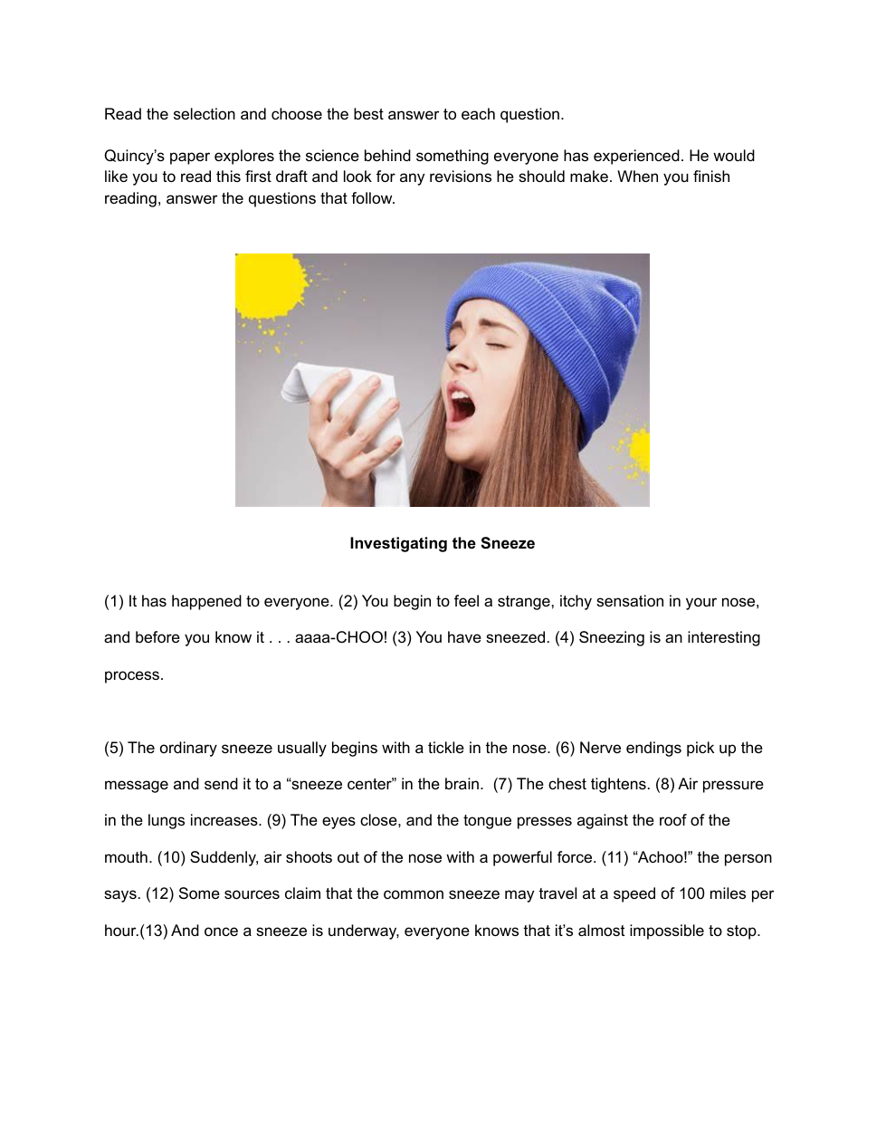 Quincy would like to add the following detail to the second paragraph (sentences 5–13). Where should this sentence be inserted?