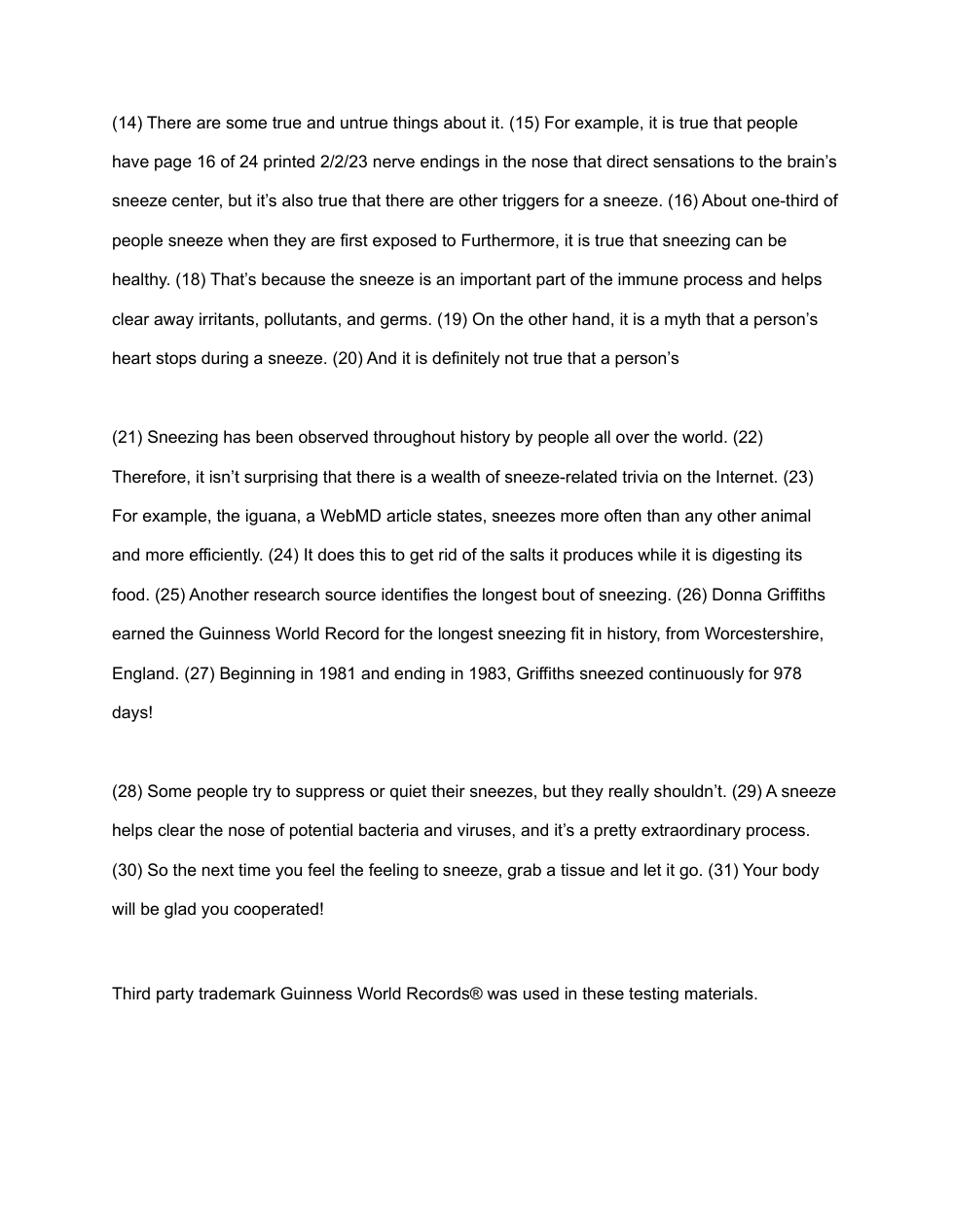 Quincy would like to provide some additional support for the idea he has presented in sentence 19. Which of these ideas could best follow and support sentence 19?