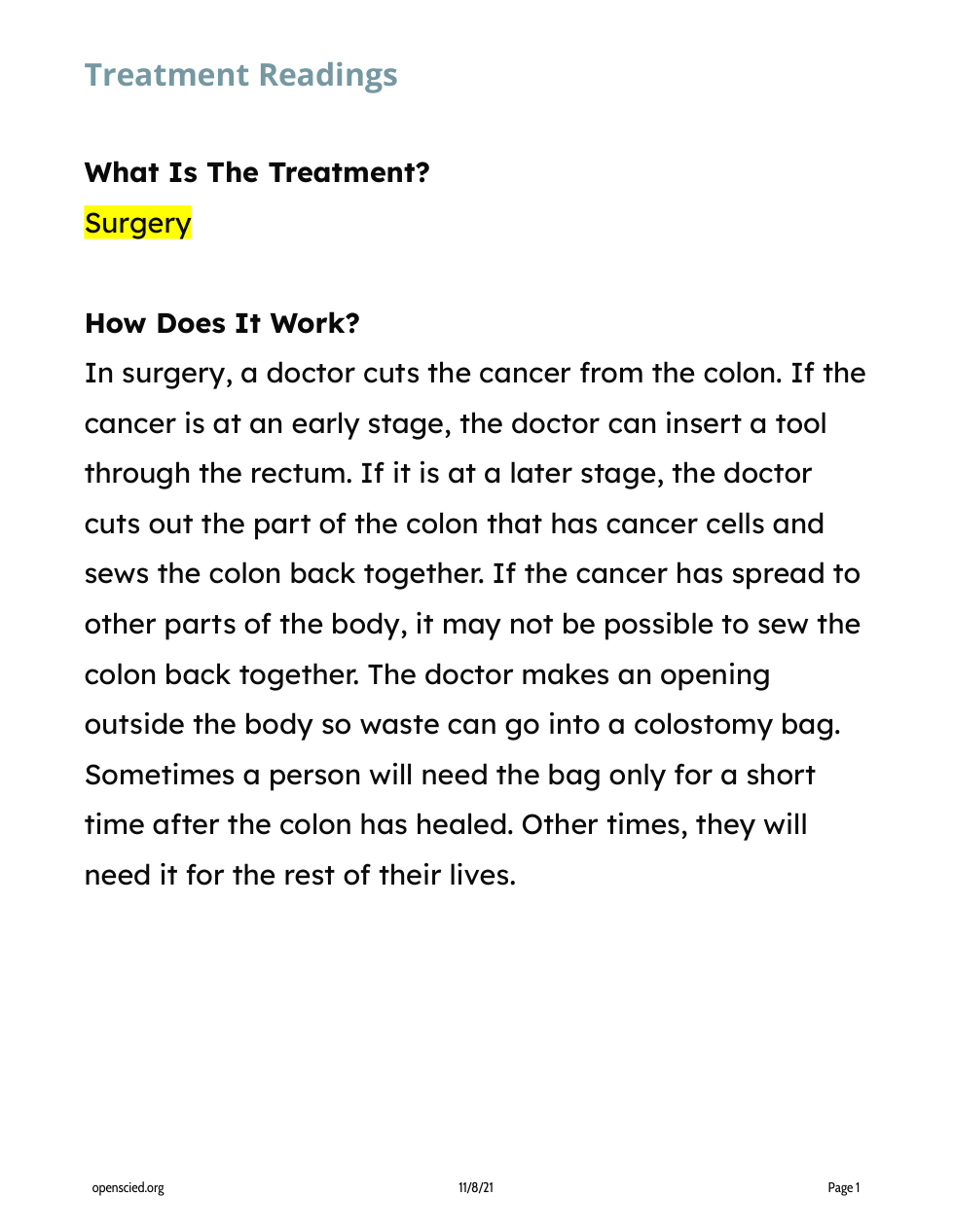 If the colon cannot be surgery put back together, the doctor makes an opening outside the body so waste can go into