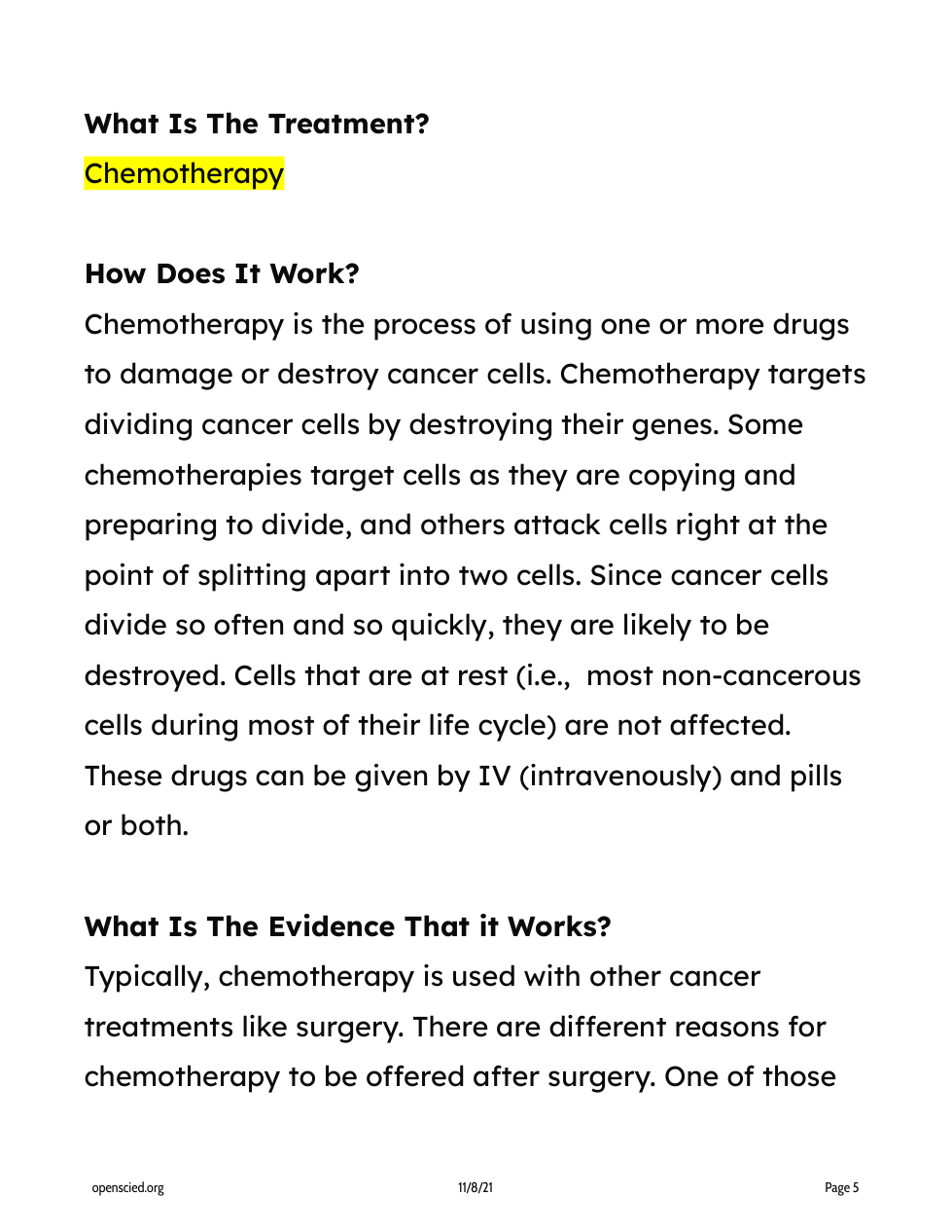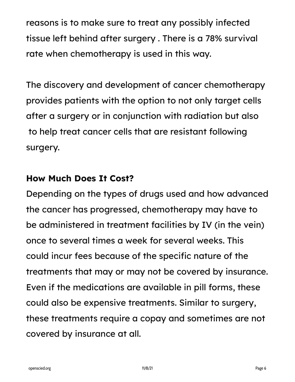 The cost of chemotherapy depends on the types of drugs used and how advanced the cancer is
