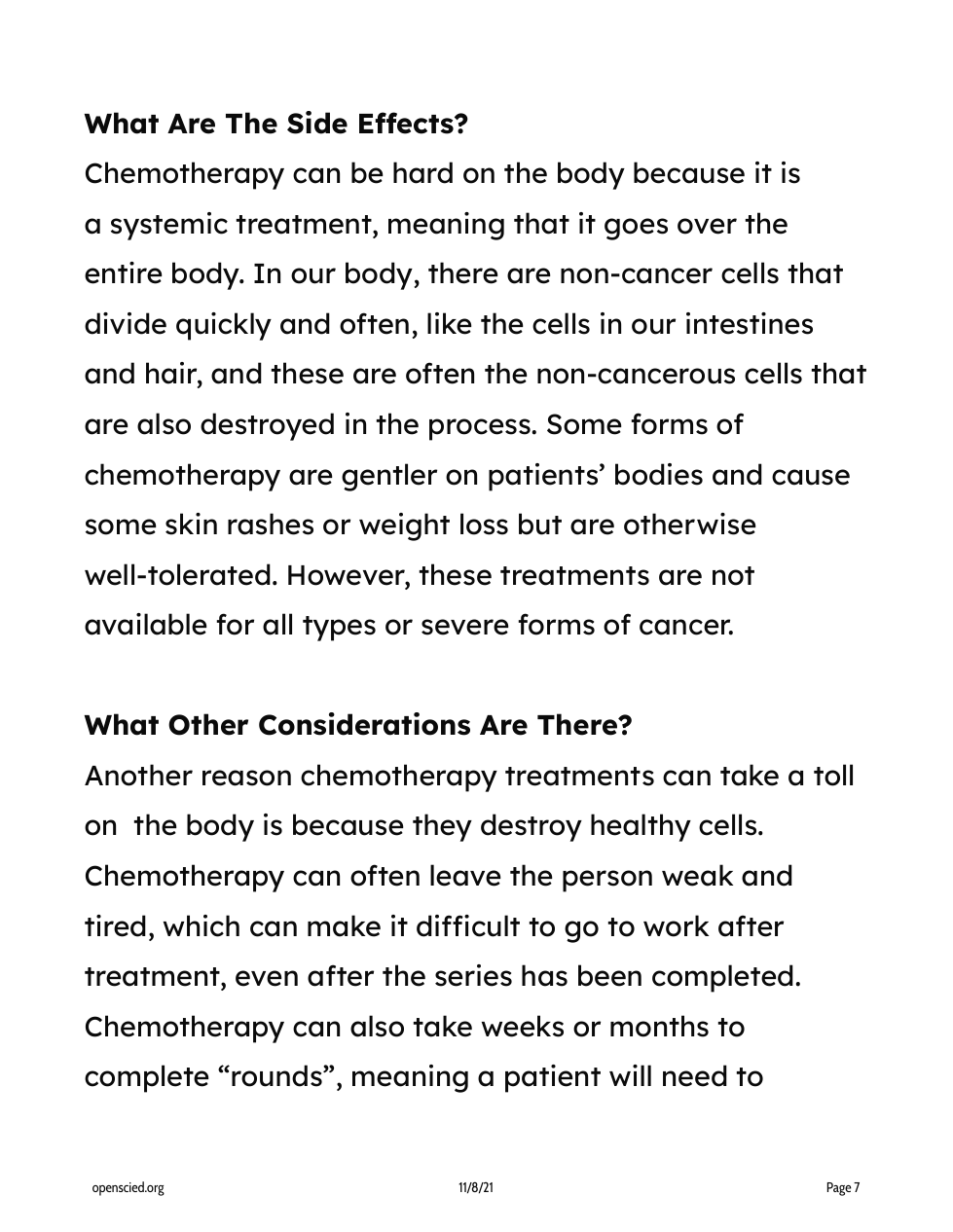 Some chemotherapy drugs cause skin rashes and/or weight loss
