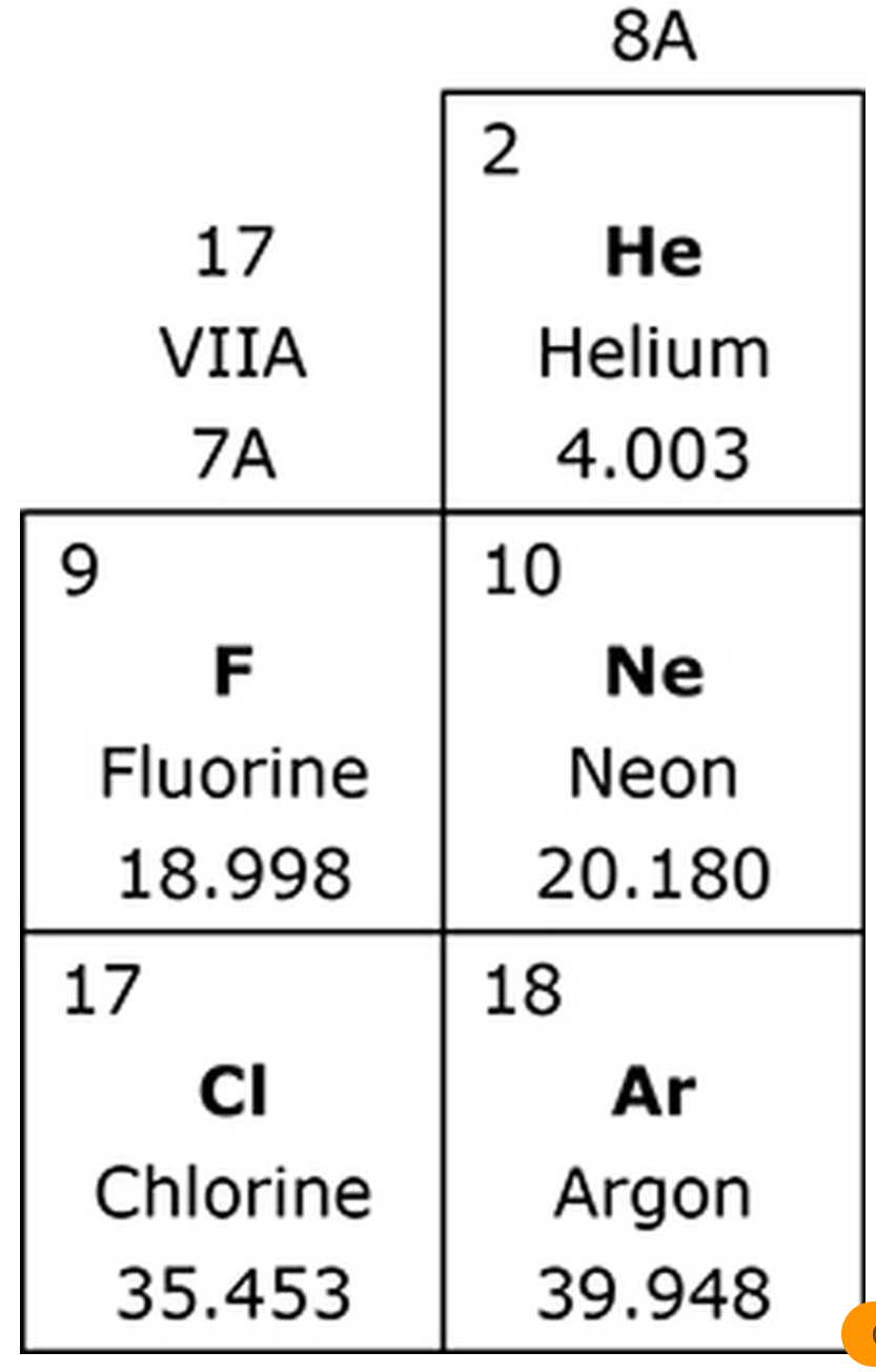 Due to their stable outer electron shells, _______ do not readily react with other elements. These comprise group _______ .
