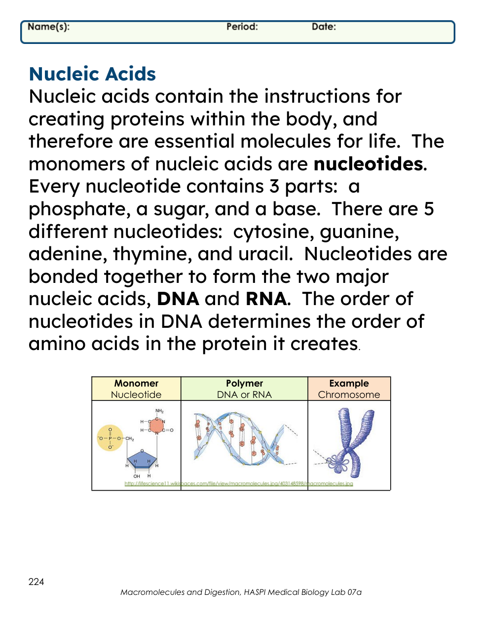 The three parts of a nucleotide are a phosphate, sugar, and base