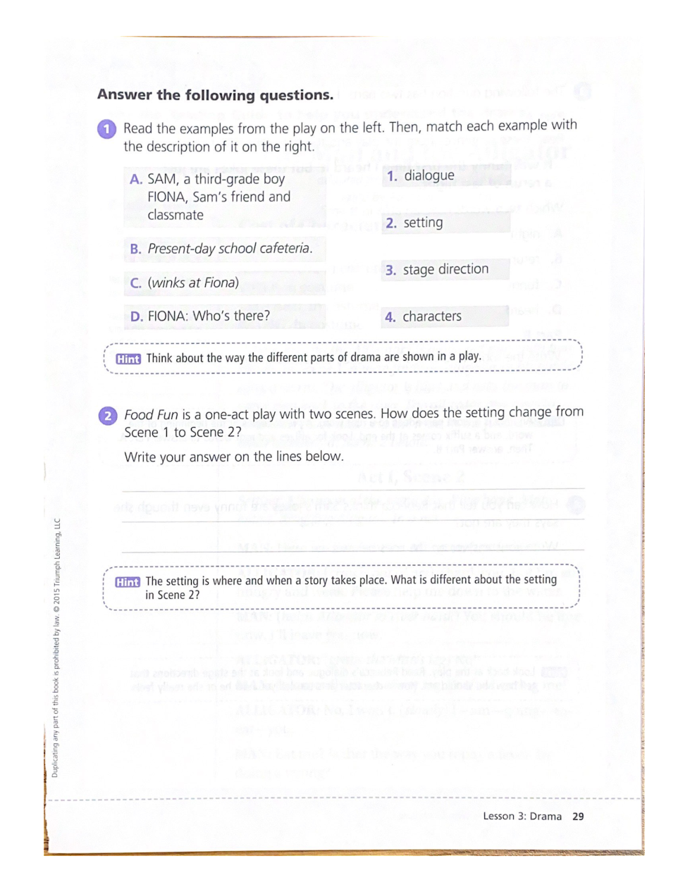 Sam, a third-grade boy Fiona, Sam's friend and classmate | arrow_right_alt | characters |