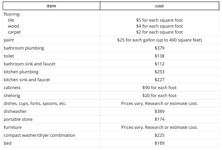 Lesson 5: Tiny House Cost