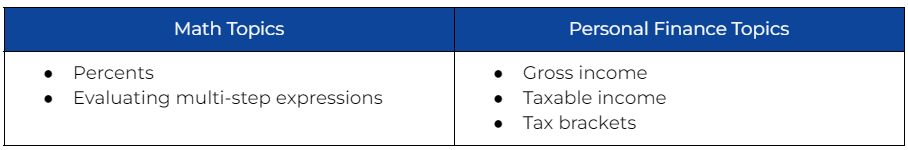 How exactly do tax brackets work? When we file our taxes, where does the number for total tax come from? In this activity, you will practice calculating your taxable income, reading a tax bracket table, and finding your total tax due based on how much you made in the calendar year.