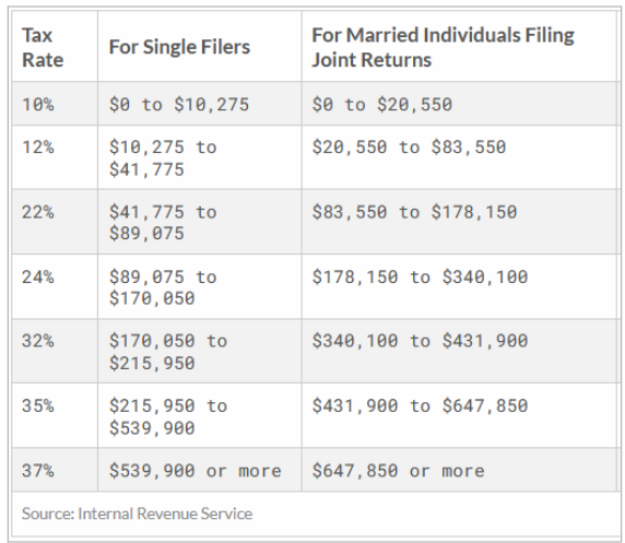 Alex and Tory are married and filing jointly. This means their standard deduction is 24,400. Be sure to use the second column to determine the proper brackets. Their gross income is $150,000. How much do they owe in federal taxes?