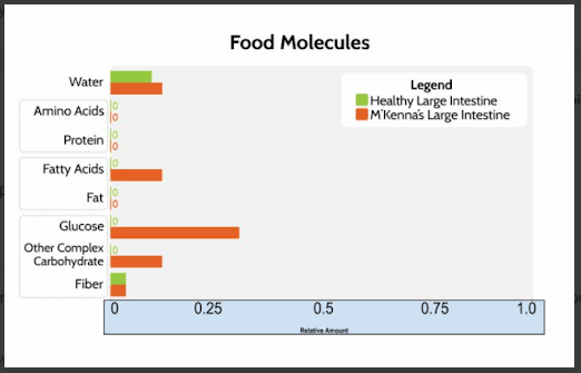 What's happening to the amount of glucose in M'Kenna versus a healthy person?