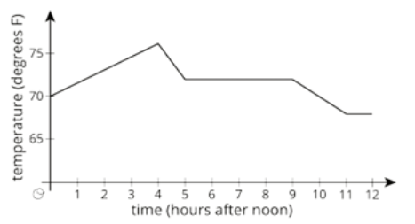 This graph shows the temperature in Diego’s house between noon and midnight one day. Select all true statements.