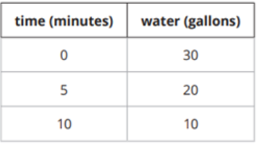 This table shows a linear relationship between the amount of water in a tank and time.