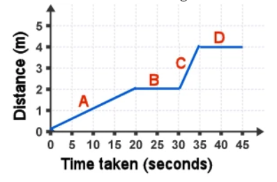 Elena goes for a long walk. This graph shows her time and distance traveled throughout the walk. What was her fastest speed, in meters per second?