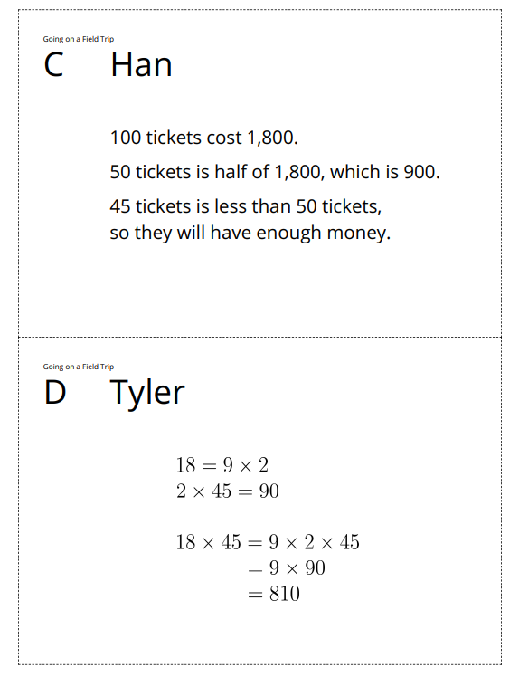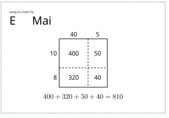 Today we encountered problems with more than one step that can each be solved using different strategies. For instance, we saw at least five ways to think about the product of 45 and 18.