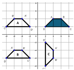 (Level 4) Describe a sequence of transformations that maps quadrilateral ABCD onto A'B'C'D'.