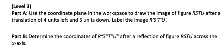 Draw the image of figure RSTU after a translation of 4 units left and 5 units down. Label the image R'S'T'U'.
