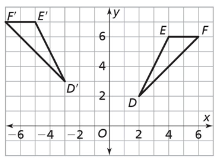 (Level 3) Prove that Figures DEF and D'E'F' are congruent by giving a detailed sequence of transformations that map DEF onto D'E'F'.