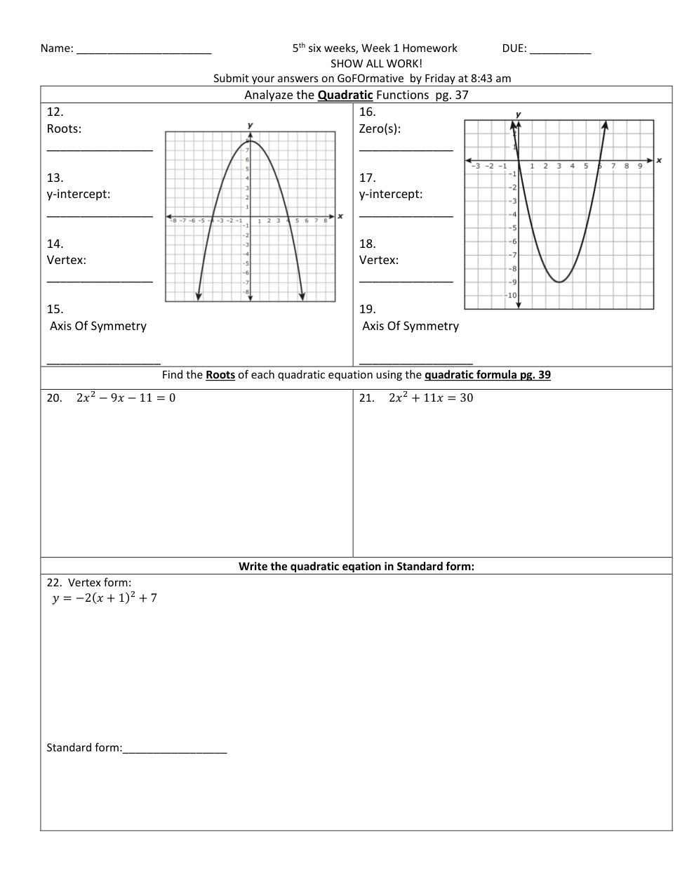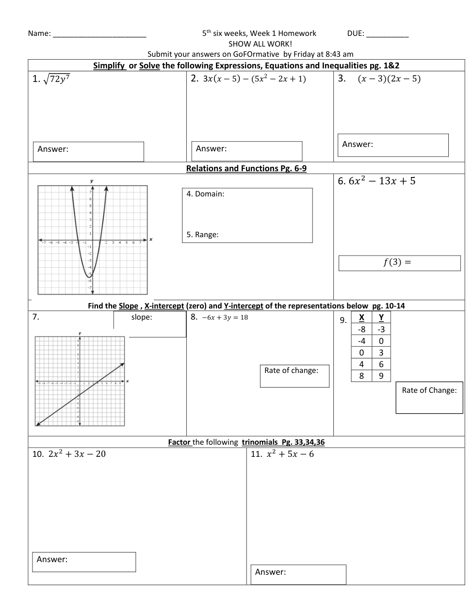 5th 6 weeks-Week 1 HW