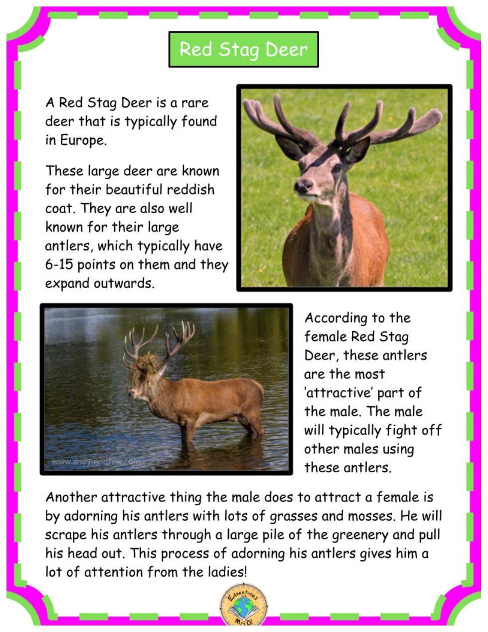 What does the male Red Stag Deer adorn (decorate) his antlers with to attract the female?