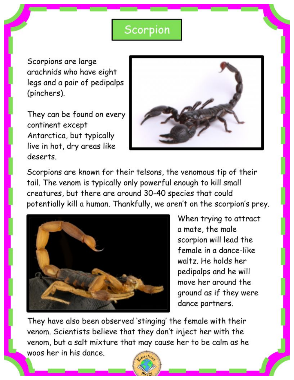 The male Scorpion will hold the female's pedipalps (pincers) and ________ with her, and sometimes stings her with saltwater to calm her down.