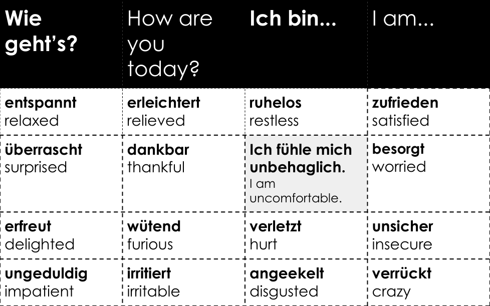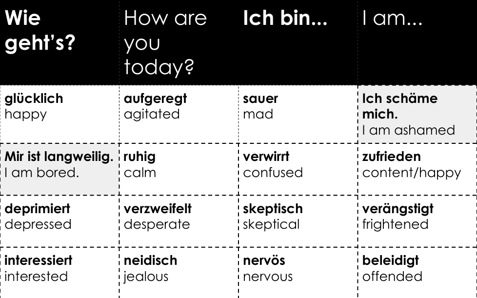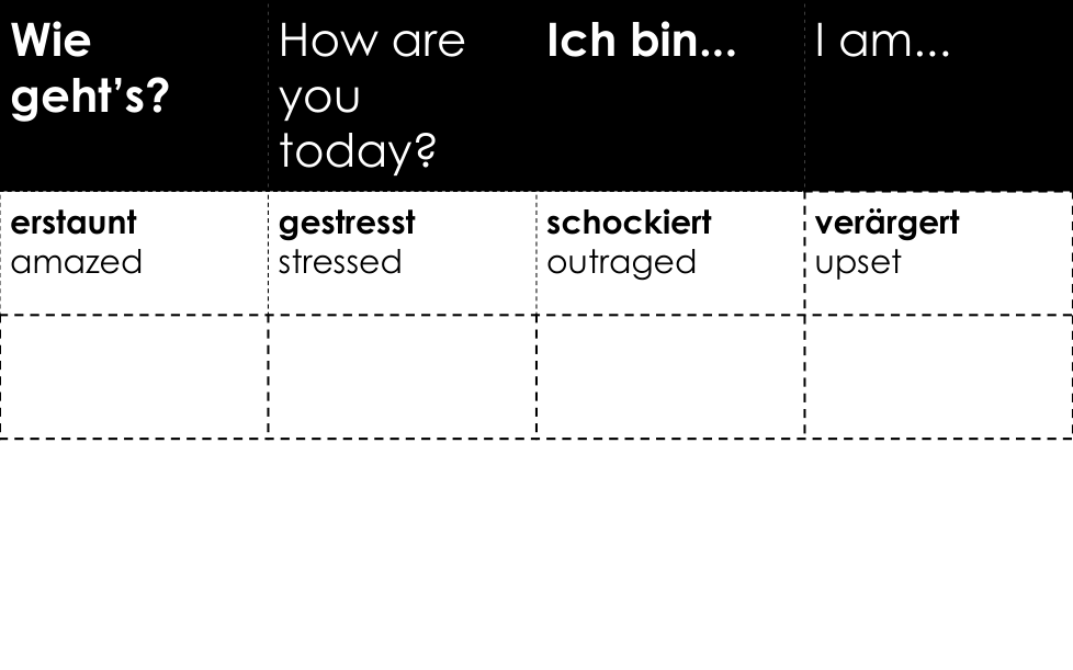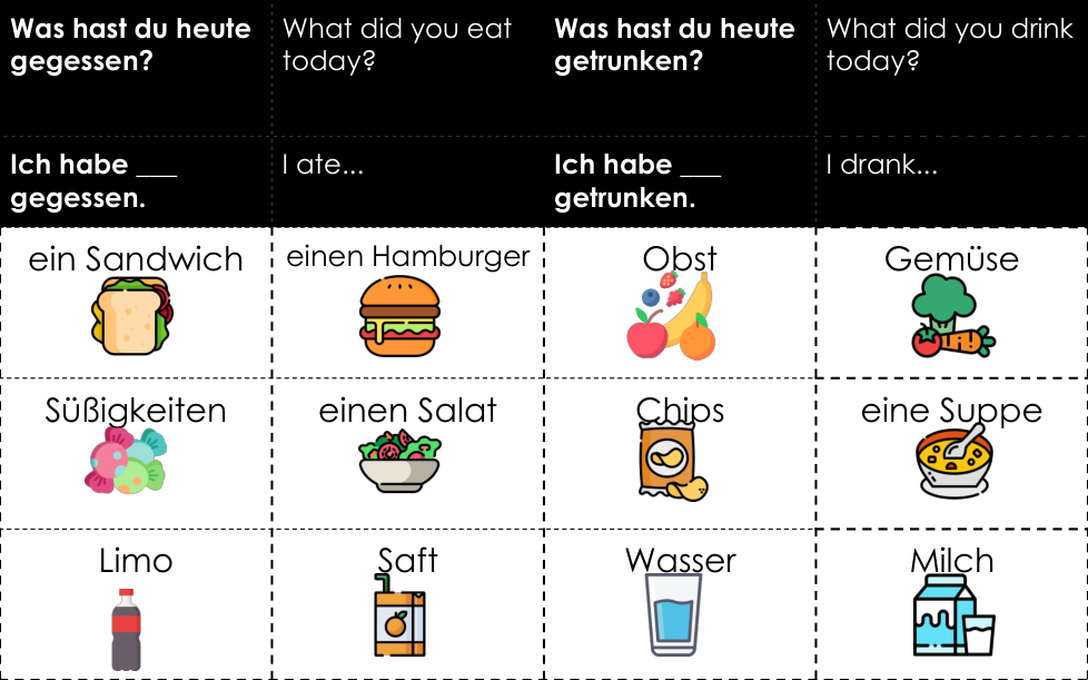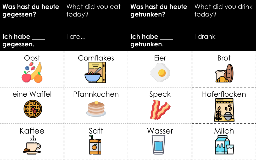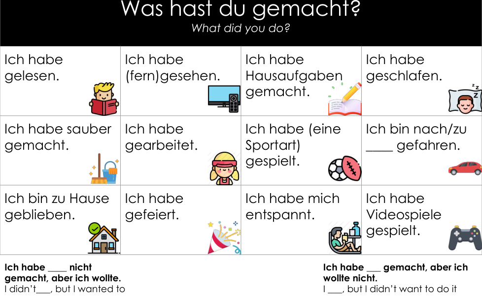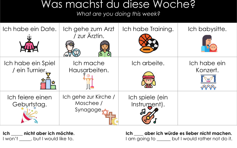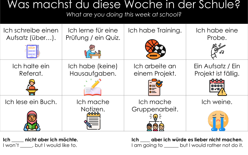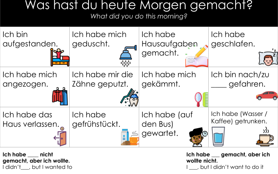 Present, Past and Future time are all here...Make using German a daily habit. Here's what a Chat Mat looks like. Scroll down to see all of the mats.