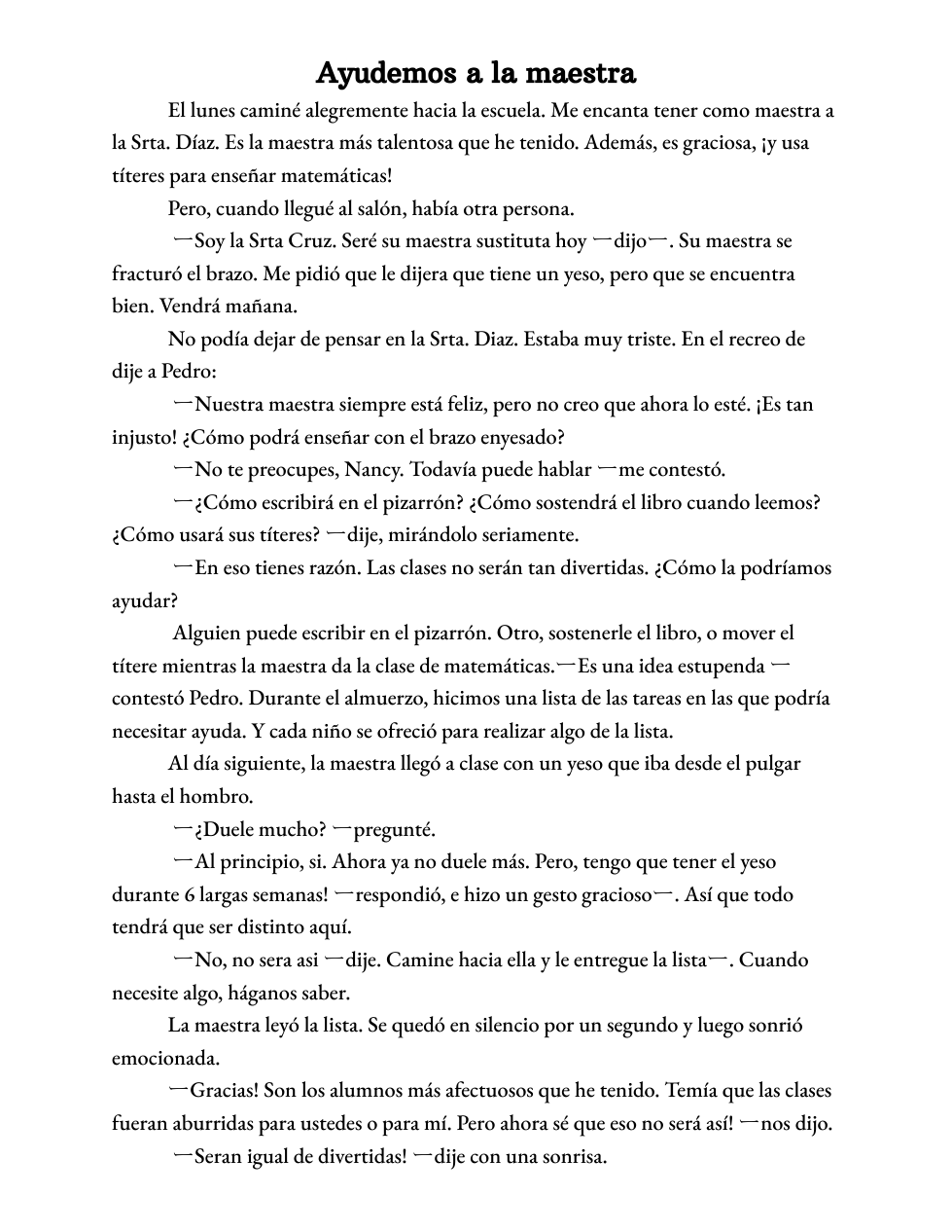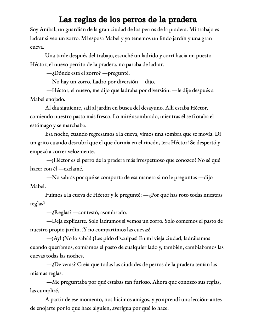 Lee el cuento. Después, contesta las preguntas acerca del texto.