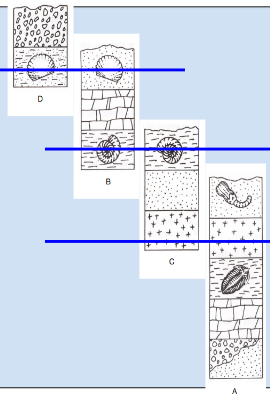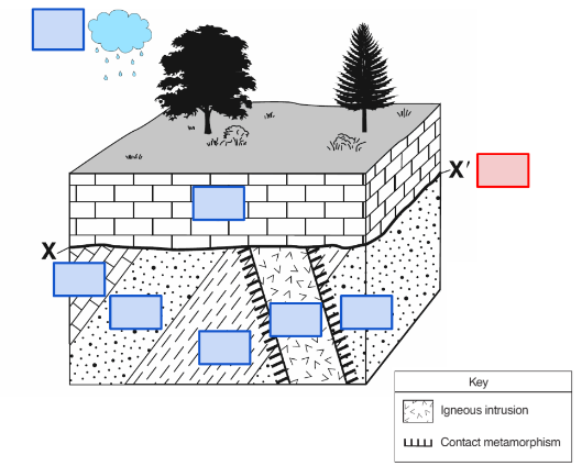 On the image tell me which rock layers are oldest to youngest:Oldest = 1Youngest = 6Click on "show your work"