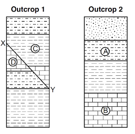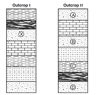 Which rock layer in Outcrop 2 is same Layer X in Outcrop 1