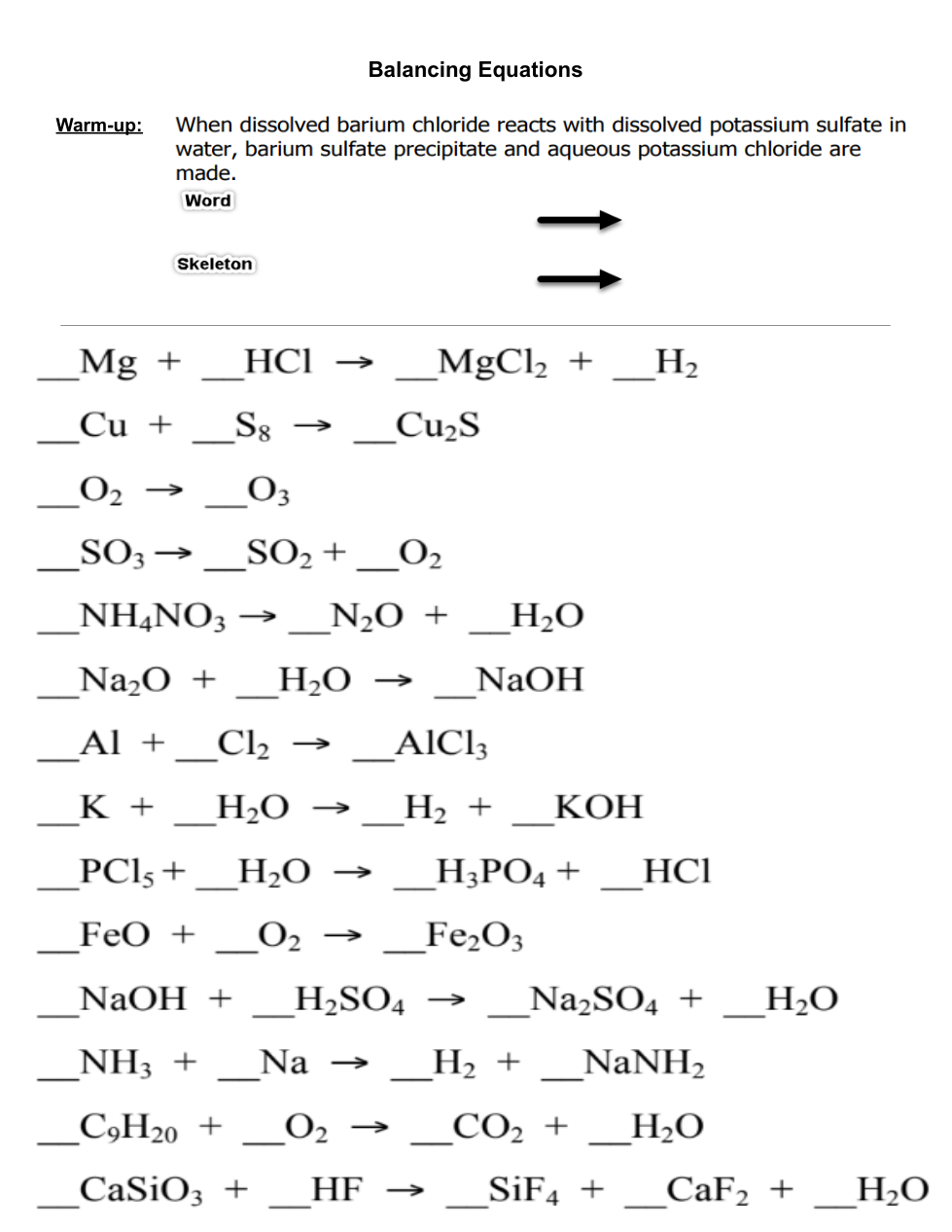 2/23: Balancing Equations
