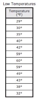 The table show the low temperature in degrees Fahrenheit for a city each day for 12 days.