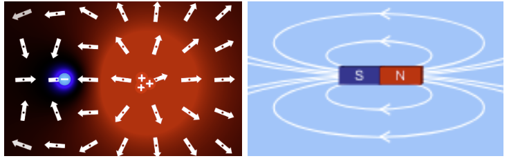 Notice: Magnets have North and South poles. These poles create a magnetic field that is similar to electric fields. In fact, this is why you will hear the term electromagnetic field.