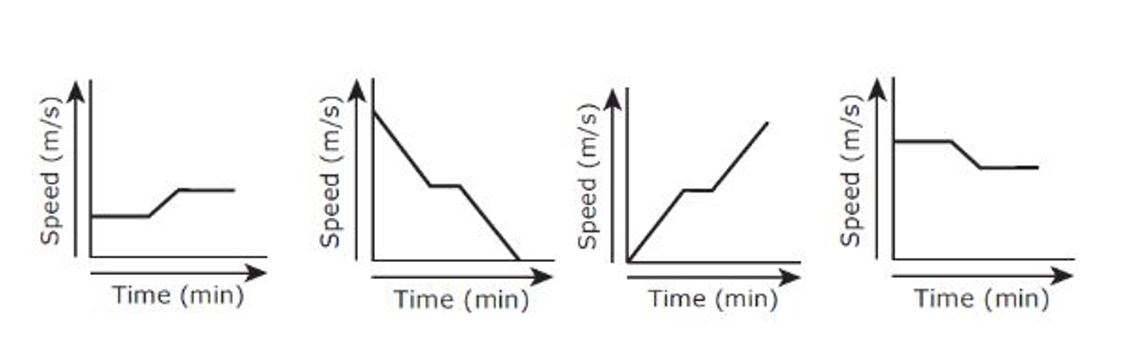 Look at each graph and match them based on what they are depicting. Acceleration, Constant speed, or No movement.