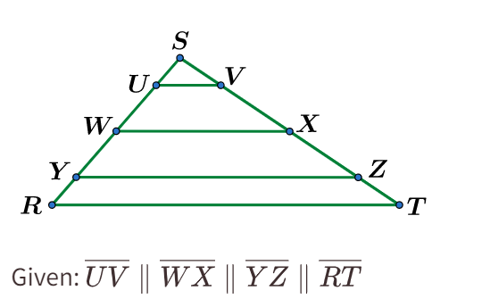 • Demostrar que una línea trazada paralela a un lado de un triángulo que corta a los otros dos lados divide a los otros dos lados proporcionalmente.