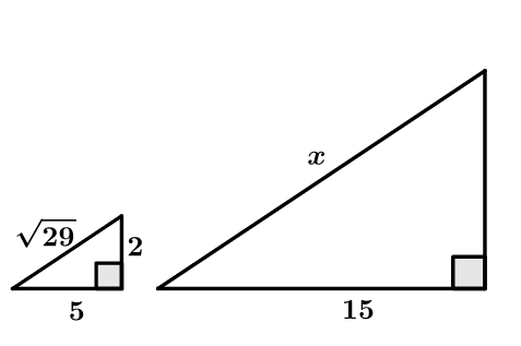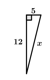Solve for x to find the missing side in each right triangle.