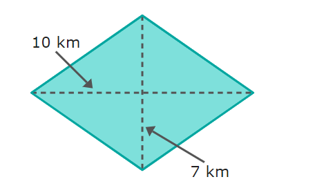 The diagonals of this rhombus are 10 kilometers and 7 kilometers.
