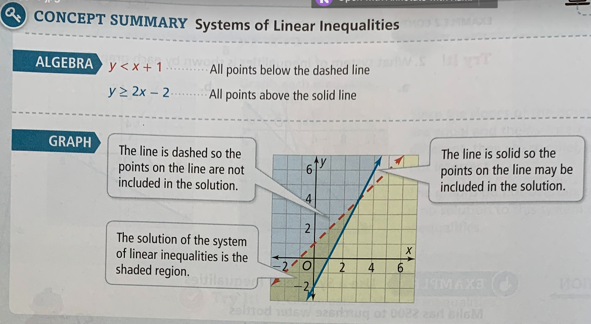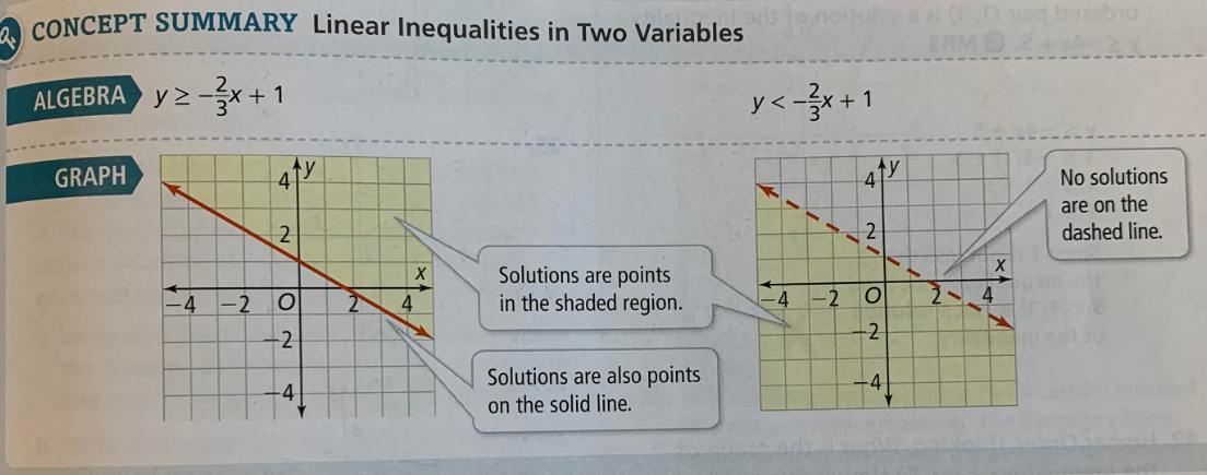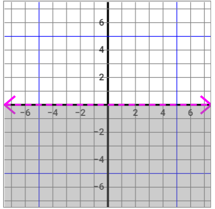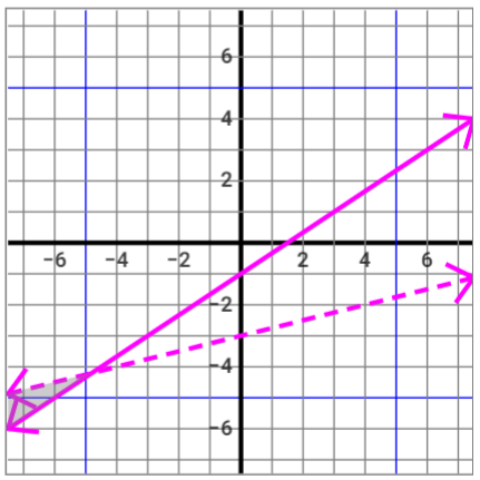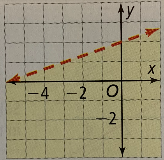 As always, include important graph detail: label the axes, indicate axis scale by labeling at least one value on each axis, add arrows to the ends of lines, ensure that your line is appropriately dashed or solid, and shade one side of the boundary line, as appropriate.