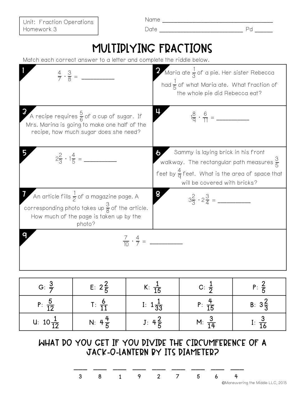 Multiply the fractions. Make sure that your answer is in lowest terms.