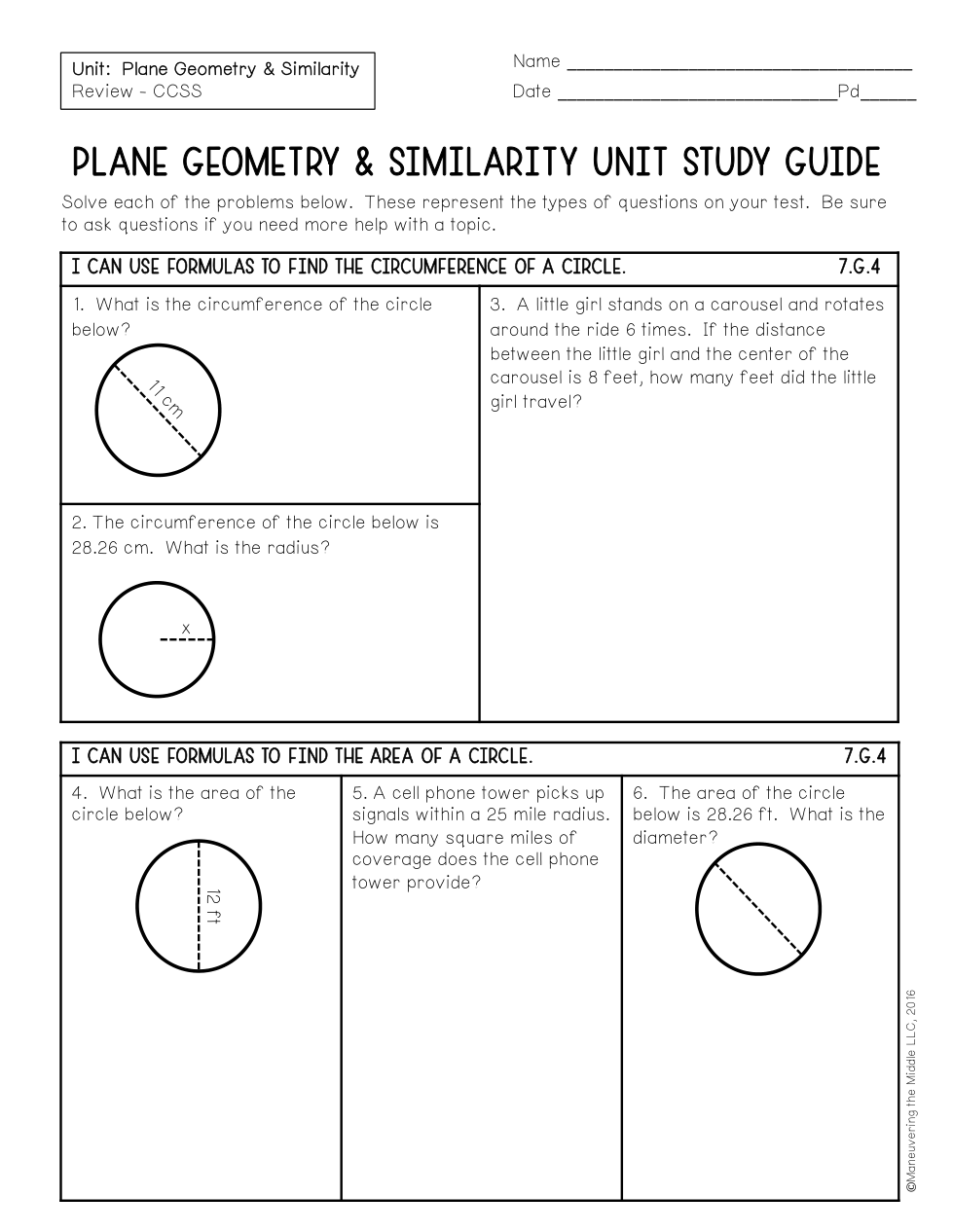 Use 3.14 for Pi and add in all units. Round all answers to the hundredths place.