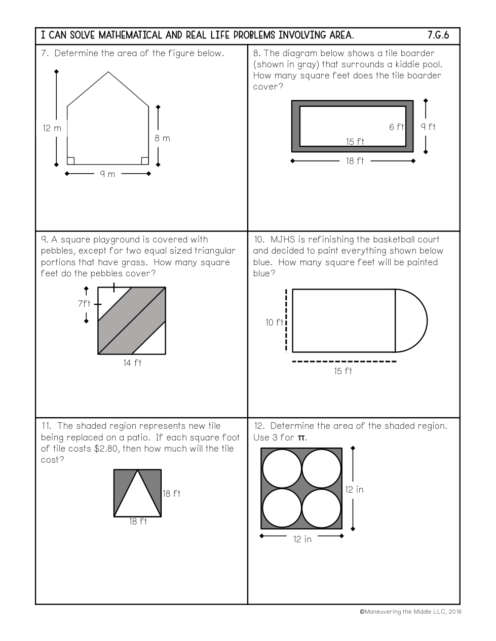 The shaded area is _______ feet squared