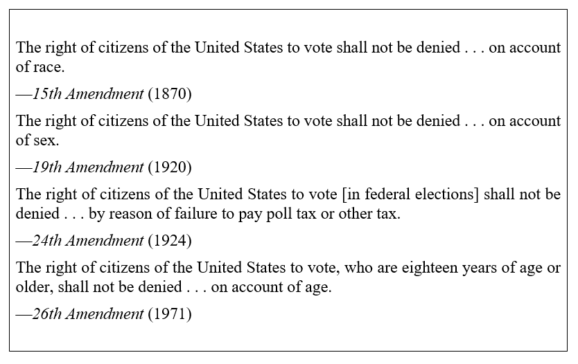 The chart below contains excerpts from several constitutional amendments.