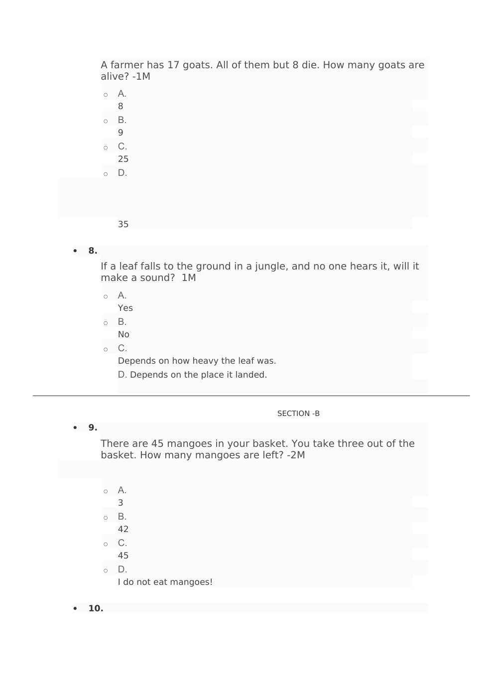 A farmer has 17 goats. All of them but 8 die. How many goats are alive